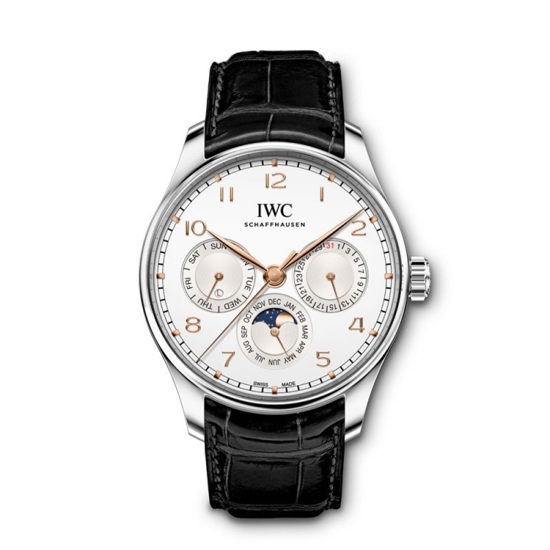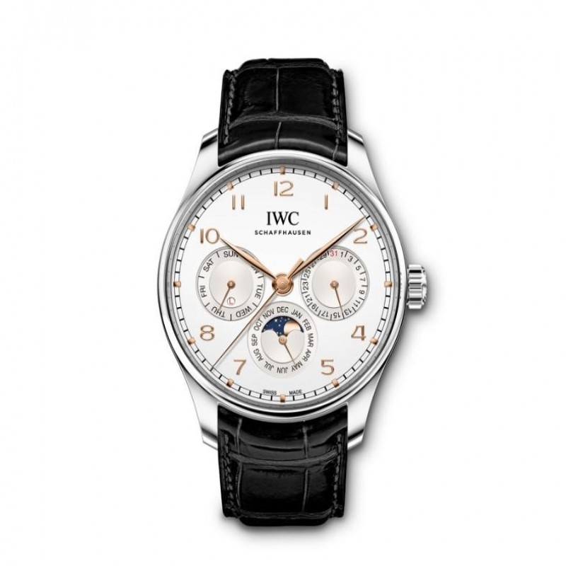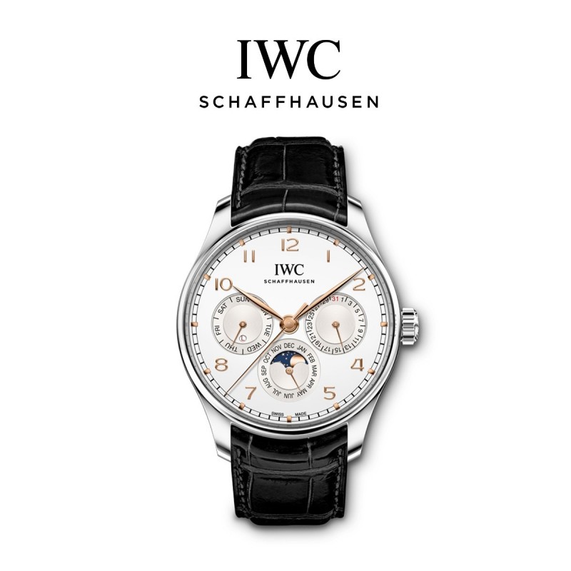 Reloj oficial IWC/IWC genuino, serie portuguesa, reloj de calendario perpetuo de cuero genuino para hombre