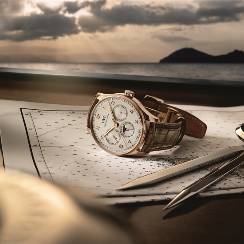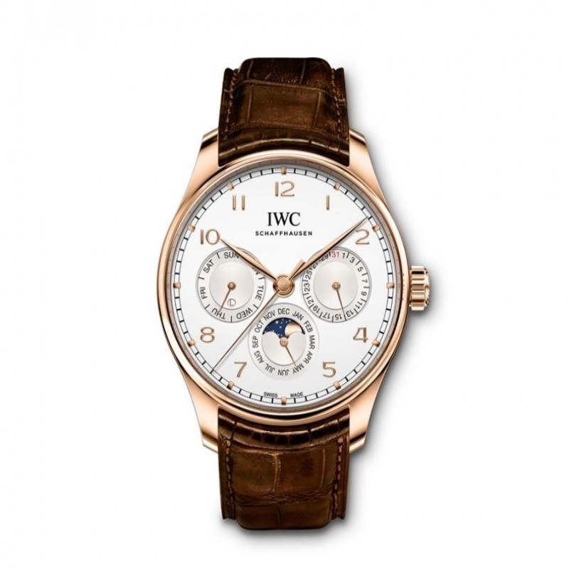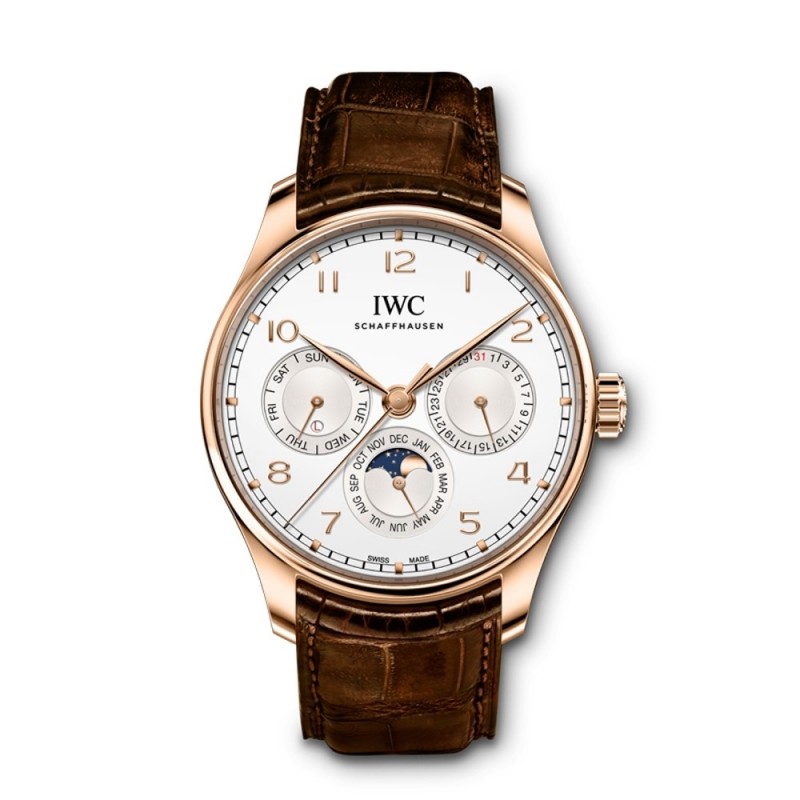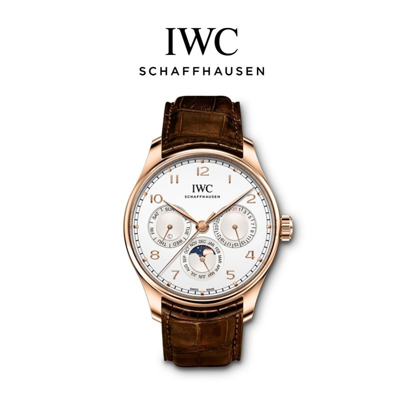 Reloj oficial genuino IWC/IWC, serie portuguesa, reloj mecánico con calendario perpetuo de cuero para hombre